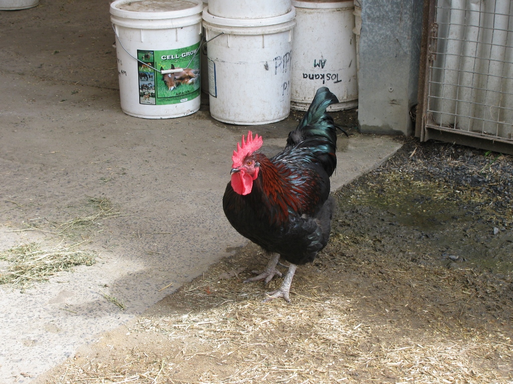 When we got to the farm we met ‘S’, my new housemate and fellow horse helper, unloaded my things into my new room (inspected first by my “2 dads”;)) and took a little wander around the front of the house.  That is where we first met Rudy the rooster.  I still recall ‘J’ and ‘A’ being cautious about the ridiculously fat, and I mean seriously rotund, rooster that was roaming around the front of the grooming stalls, while I simply brushed aside the notion that he could be dangerous by pointing out that surely they wouldn’t allow a rooster who attacks to roam around freely.  He wasn’t showing any signs of aggression or threatening motions, so I figured he was friendly…