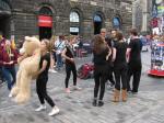 By far, however the BEST performance I saw on the streets of the Royal Mile during the Fringe was Joel Grainger… I was just coming out of a building after having bought a ticket for a tour of the Real Mary King’s Close and I had about a half hour to kill.  I walked on the street and was lured by the sound of a voilin.  I love voilin music to begin with, so I walked toward the sound and on a stage erected on the side of the street was Joel Grainger.  He was the only musician present, but due to his technique of “live-looping” he was able to play every note of a song LIVE!  He played “somebody that I used to know” by Gotye and Pachebel’s Canon in D in all their glory!!  I’m not going to be able to describe his technique of live-looping to do him justice, so you are just going to have to check him out for yourself… I know he’s on YouTube, and though I don’t Facebook, I know he is.  If any of you are fans of the violin, you MUST check him out!!  Google “Joel Grainer Fringe” and you will see one of his performances there from this past festival:)